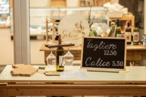 È possibile effettuare degustazioni in loco con assaggi di prodotti in abbinamento a vini e birre.