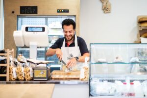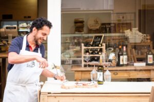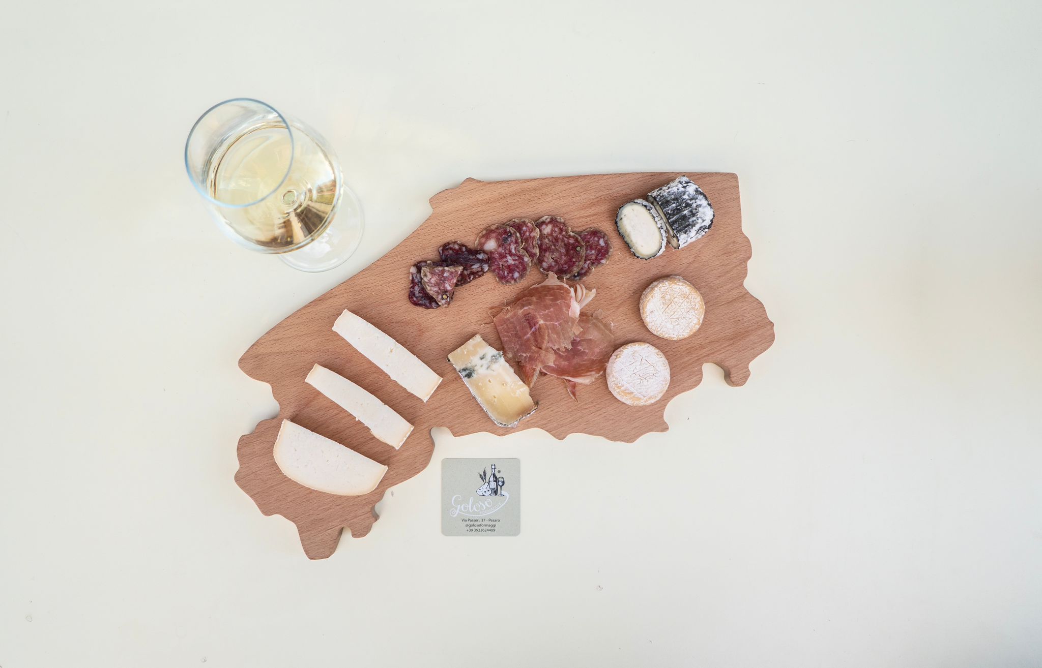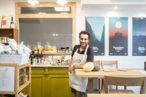 Formaggi del territorio e non solo, salumi artigianali, vini e birre del territorio, pane e farine locali, composte, confetture e tante altre tipicità regionali.