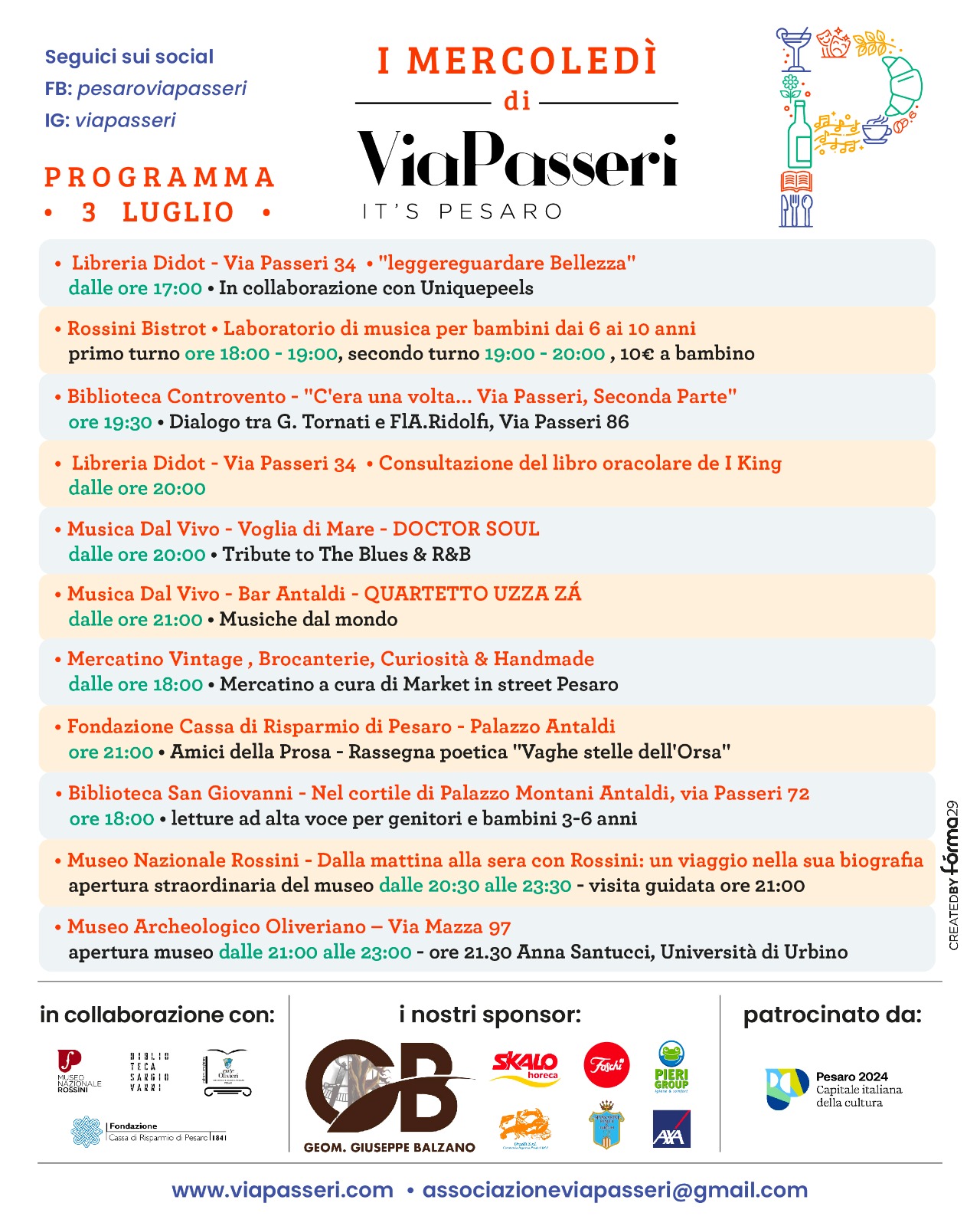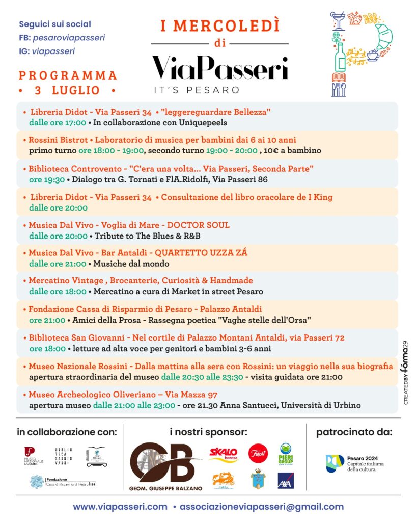 Mercoledì 3 luglio tornano “I MERCOLEDì DI VIA PASSERI” proposti dall’associazione “CENTRO COMMERCIALE NATURALE VIA PASSERI“.
